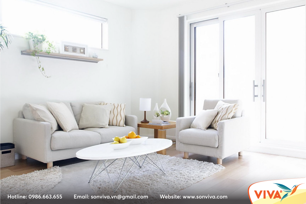Lựa chọn màu trắng cho ngôi nhà hoàn toàn không lỗi thời hay nhàm chán, cũ kỹ. Cũng như khi phối đồ, màu trắng đen cơ bản đều cực kỳ cần thiết, nhất là khi bạn muốn gây ấn tượng thanh lịch, giản dị nhưng vẫn trang nhã. Ngoài màu sơn trắng, bạn có thể sử dụng màu trong nhóm màu Off White của Sơn VIVA như vàng nhạt, xanh nhạt, màu Pastel... sẽ có hiệu quả tương tự.