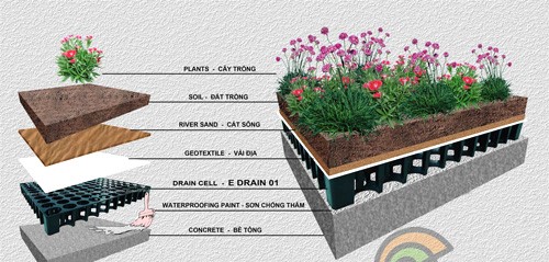 - Lớp 3 là Drain Cell (vỉ thoát nước) giúp thoát nước, tránh ngập úng.
